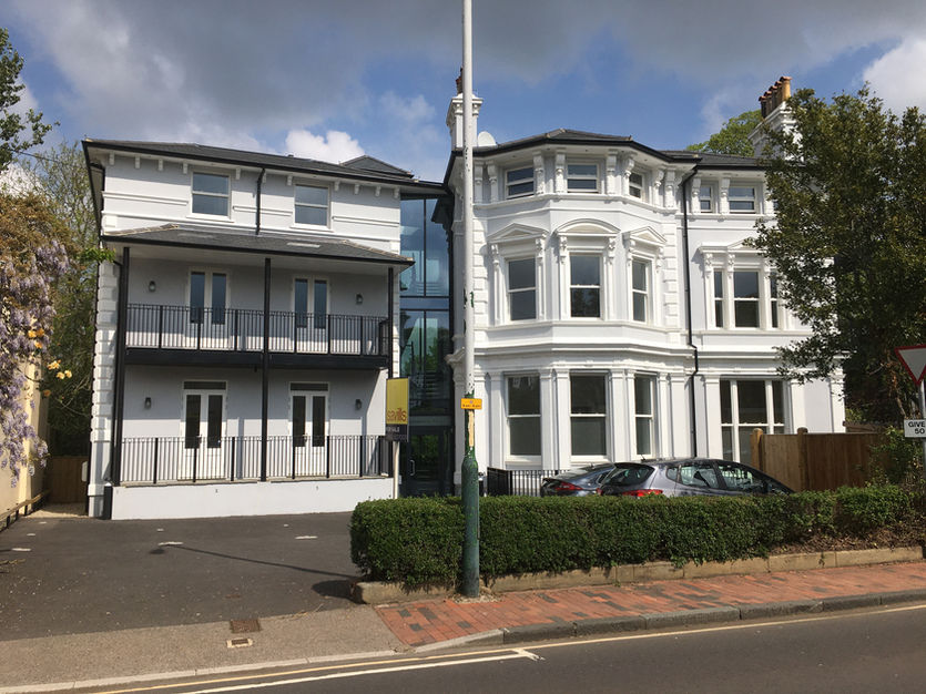 Developed by Decimus Burton the Arcadian style is prevalent in Tunbridge Wells, a town filled with trees, villas and crescents. This development extends one of these villas (previously a health centre) to form 9 luxury apartments following the pattern of the host building. The centrally located stairs and lift link the two structures together allowing the new to facilitate the preservation of the old. The stucco building is set off by large sash windows and heavy overhanging roof.