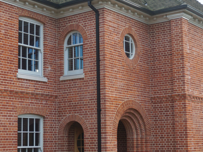 The garden front is a triple stepped facade so that each principal room has a double aspect view of the adjacent deer park both at ground and first floor level. Wider views from the second floor are facilitated by fully glazed dormers.